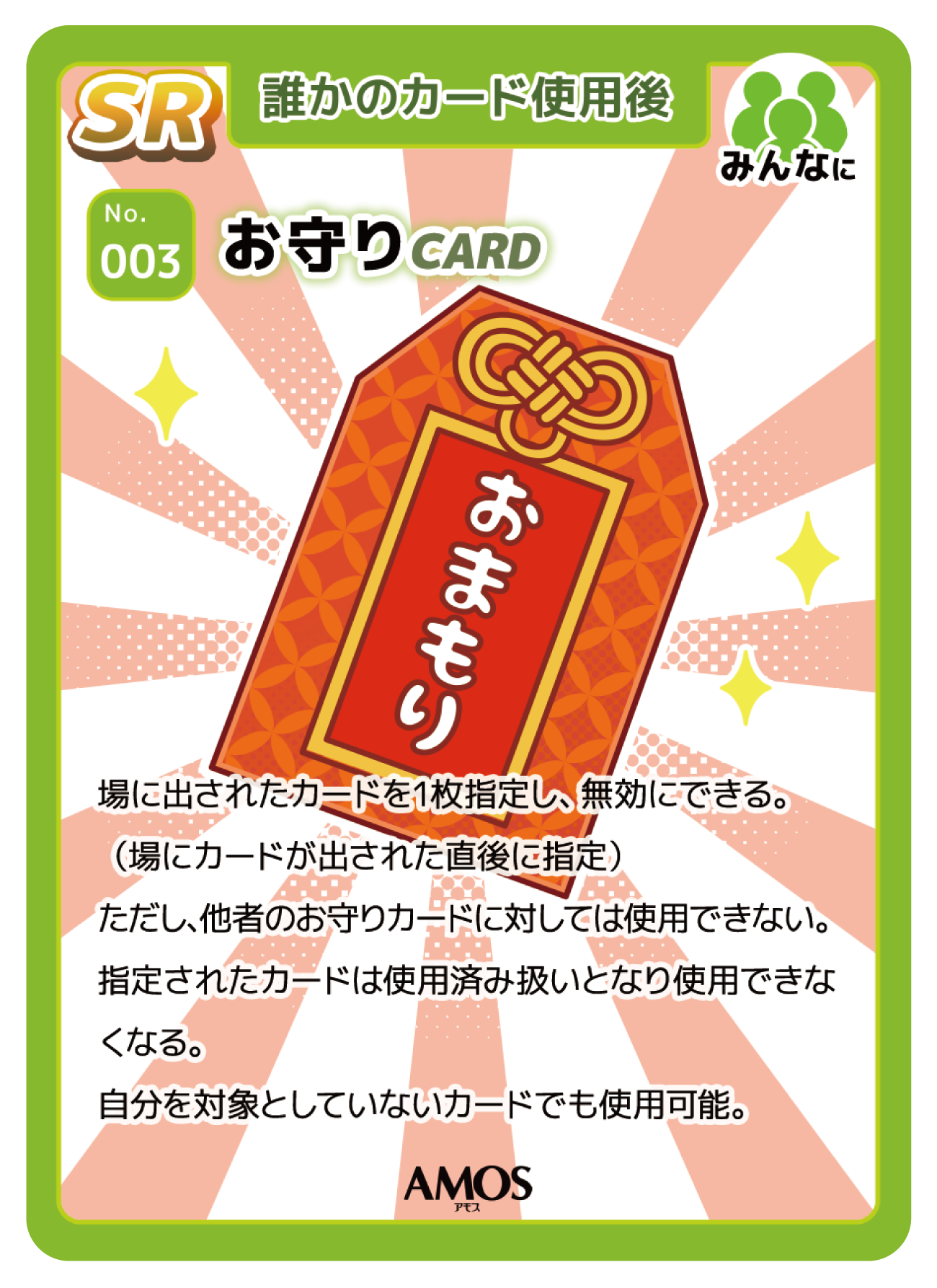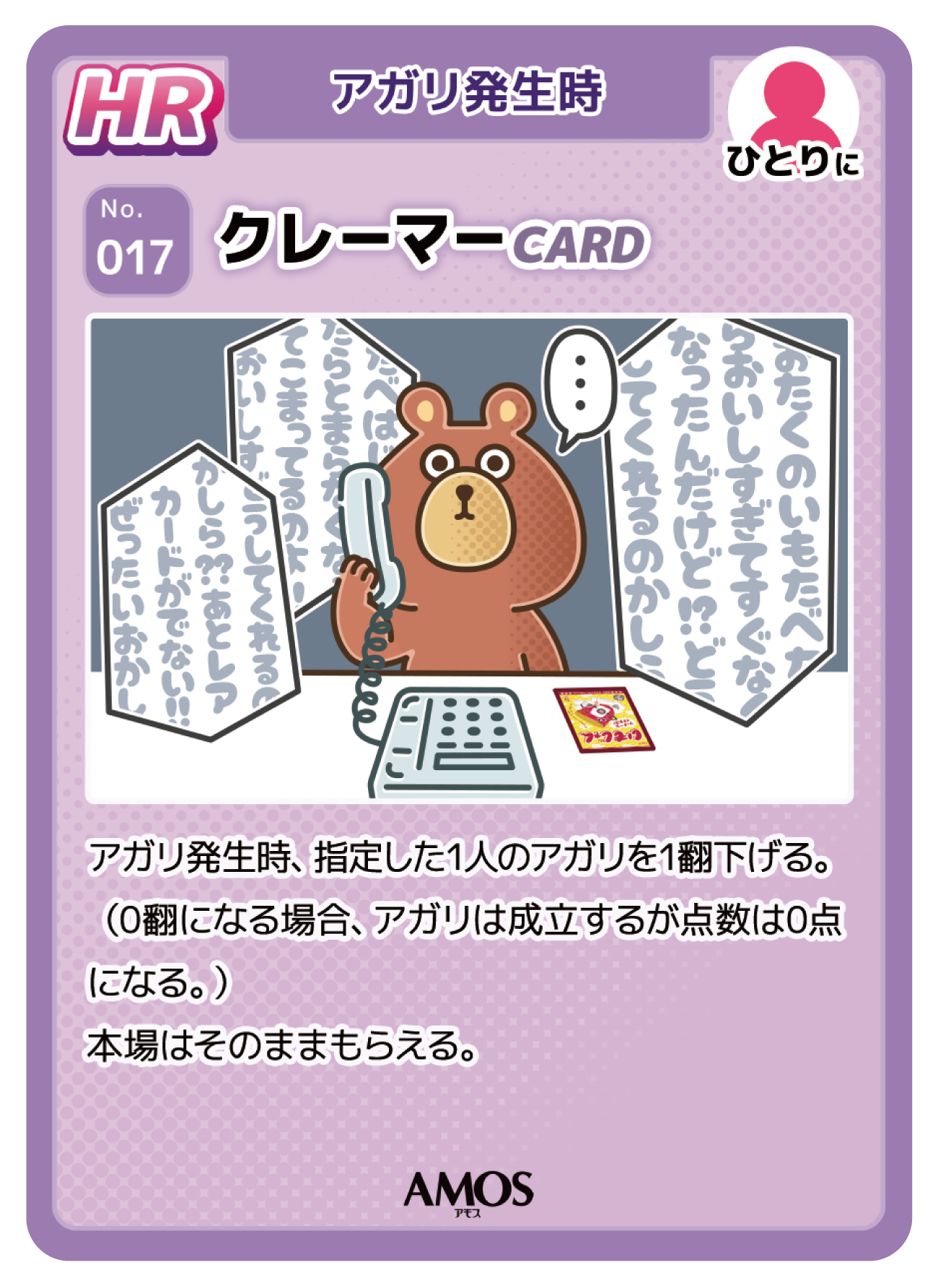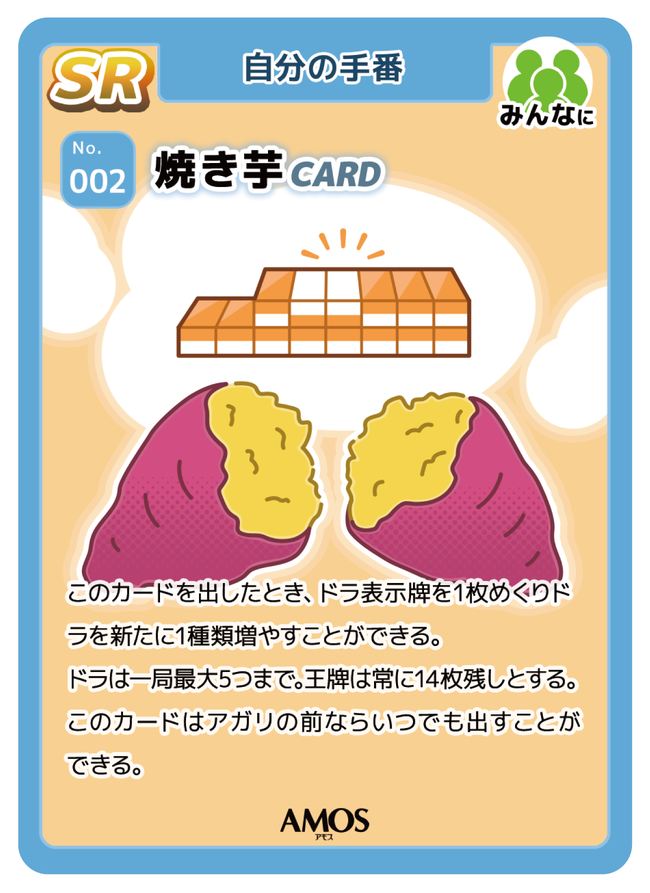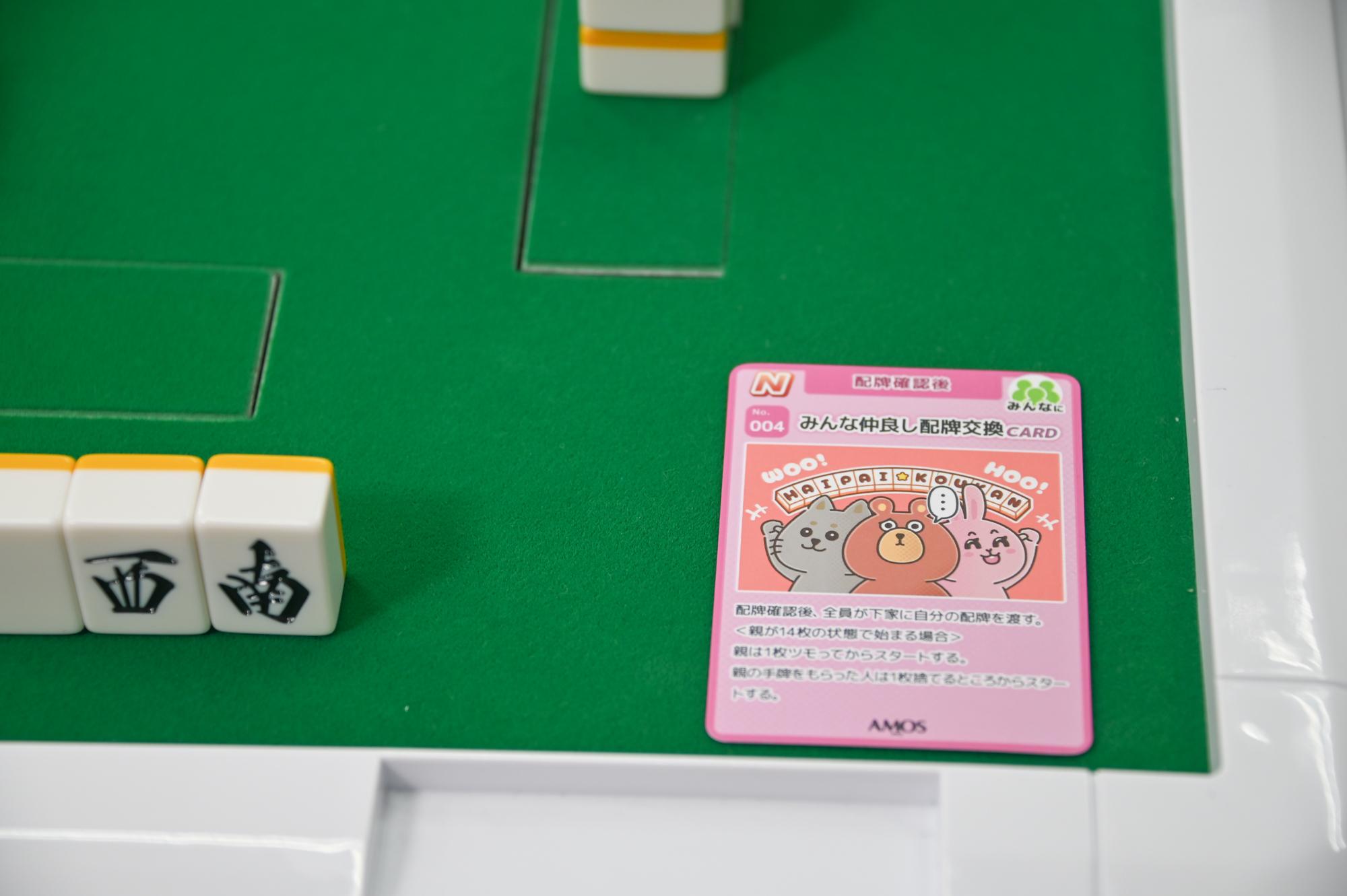 ・カードの使用中(効果の発動中)は表向きで卓の自分の右側(鳴き牌のスペース)に置く。